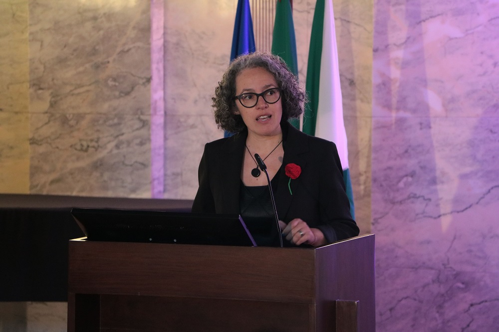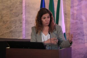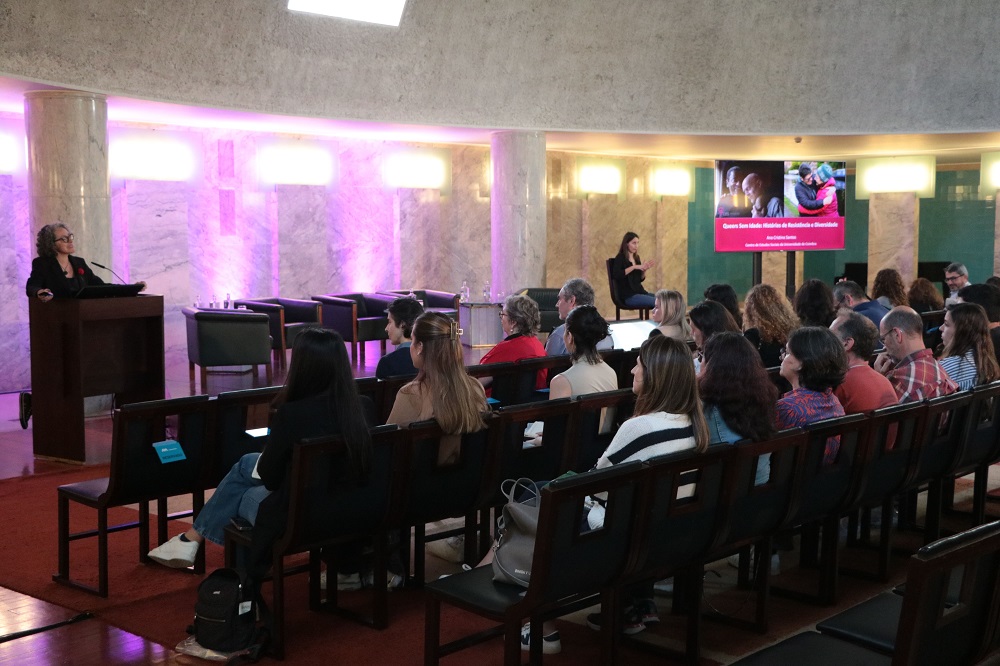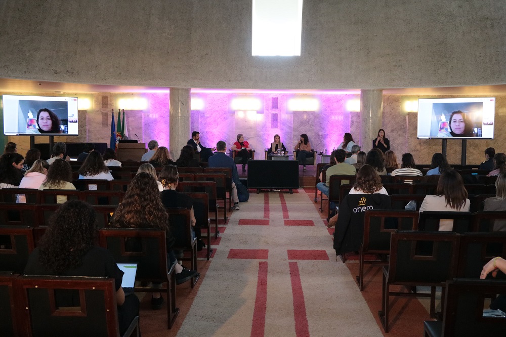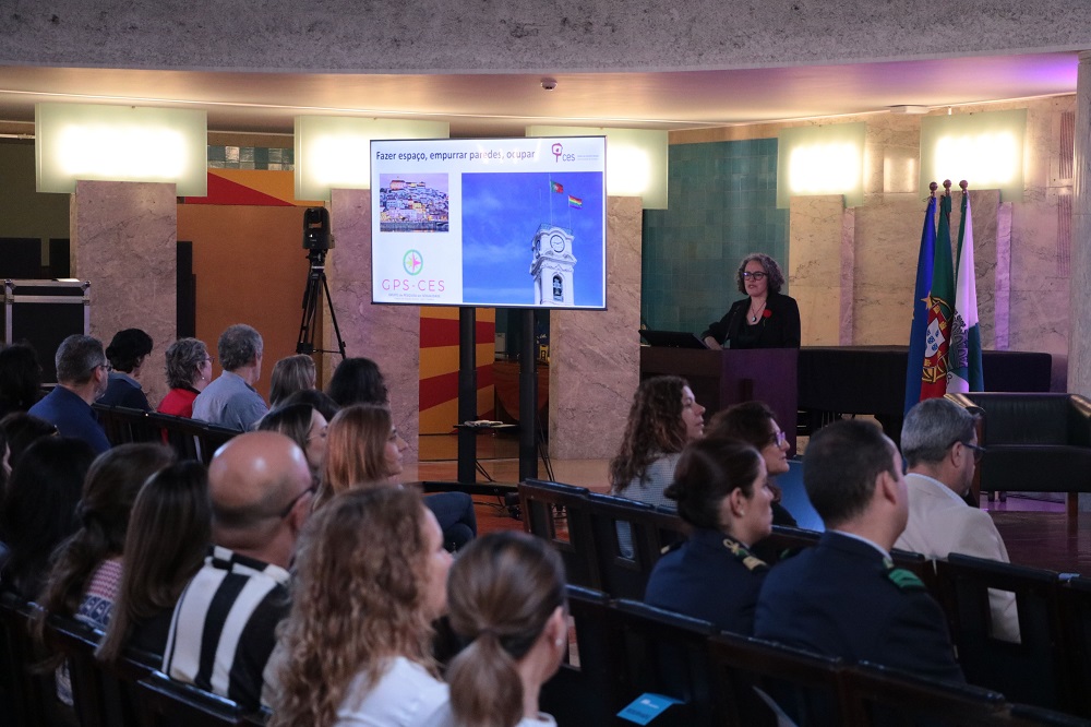 Seguidamente, o palco foi ocupado por Ana Cristina Santos, Socióloga e Investigadora Principal com Agregação no Centro de Estudos Sociais da Universidade de Coimbra, onde coordena a Linha Democracia, Justiça e Direitos Humanos.