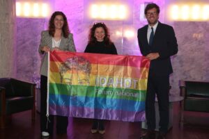 O segundo momento simbólico ocorreu logo de seguida, com a passagem da bandeira arco-íris para o Município de Oeiras, que irá acolher em maio de 2026 a quarta edição do Fórum Nacional IDAHOT.