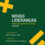 Estão abertas as inscrições para a 3.ª edição do Programa de formação e mentoria “NOVAS LIDERANÇAS | PARA UM DESPORTO +IGUAL”, dirigido a jovens dirigentes desportivos que pretendam desenvolver as suas competências de liderança, integrando a igualdade entre mulheres e homens como uma prioridade na agenda de boa governação das suas organizações desportivas. O programa […]